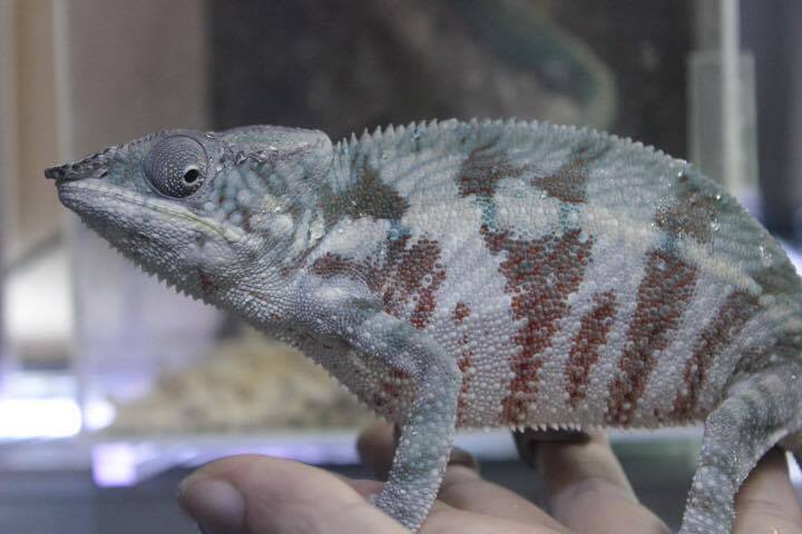 ホワイト&レッドのパンサーカメレオン。興奮時はまさに紅白。